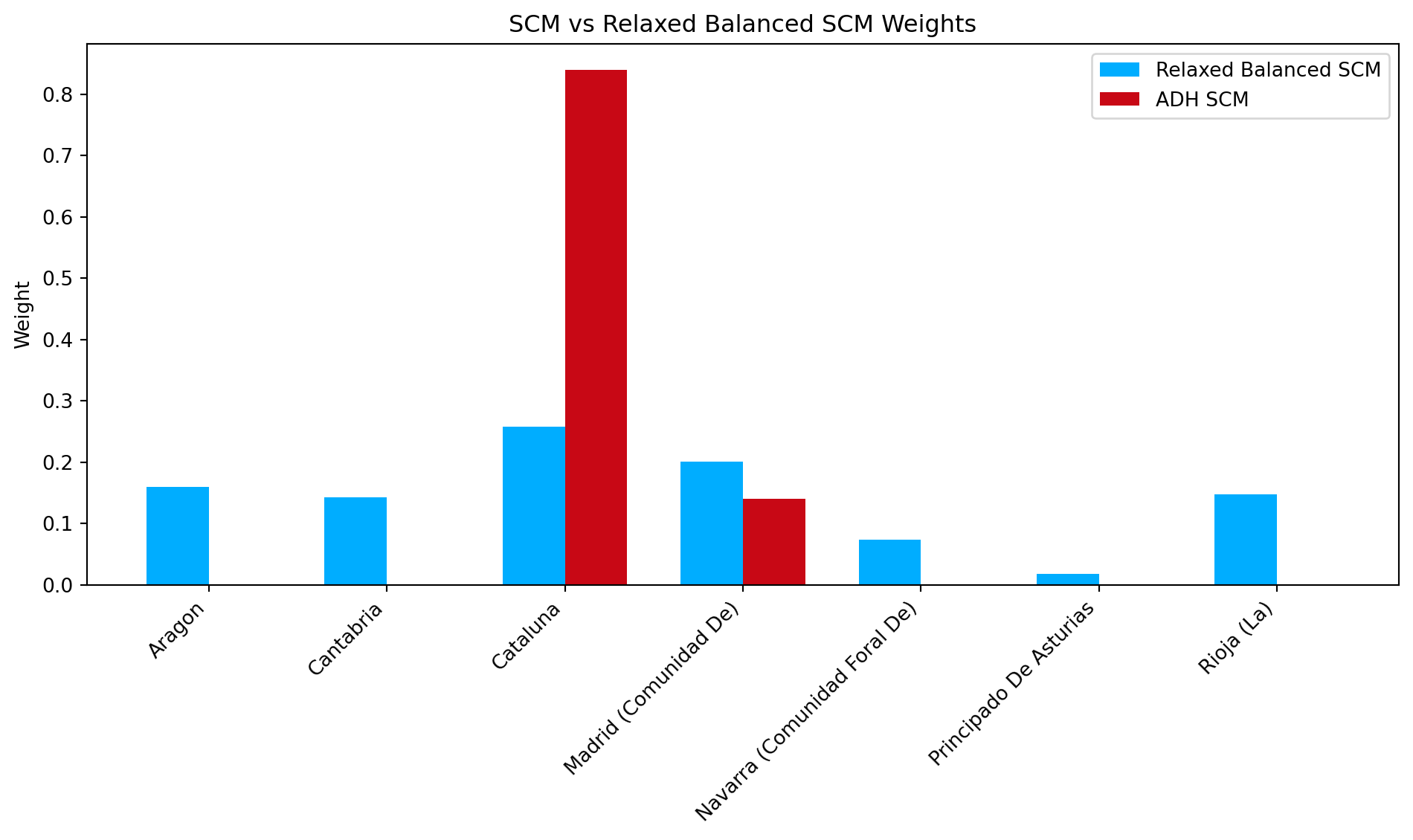 Aragon and Catalonia (weighted at 0.5), counterfactual similar to the relaxed SCM.