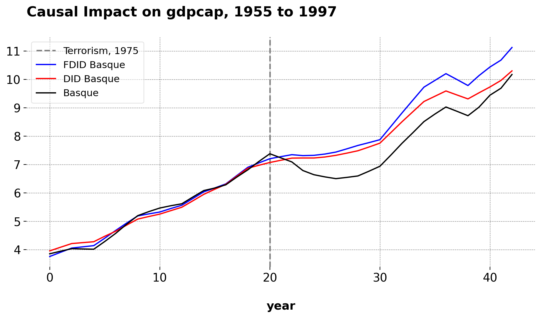 Estimating multiple SCM/DID variants across different datasets requires only minimal changes to the API call (just the class name).